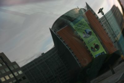 Il n’y a pas de sorcellerie Denise. C’est juste le reflet de l’immeuble dans la vitre arrière d’une voiture. [désolé mais je ne me rappelle plus de la marque]