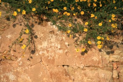 Ces jolies fleurs jaunes lumineuses sont en accord avec la belle pierre !