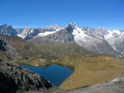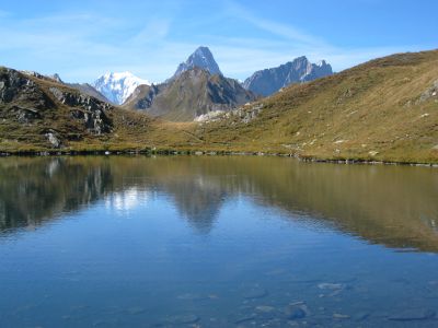 Le panorama est sublime… le lac en forme de cœur avec, en fond, le Dolent et son glacier… c’est à couper le souffle.