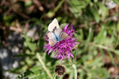 Après plusieurs kilomètres, nous quittons la route et empruntons le sentier. Seules les vaches broutent et les marmottes sifflent sur notre passage. Personne à l’horizon. Ce calme fait tant de bien. Des fleurs, il y en partout…