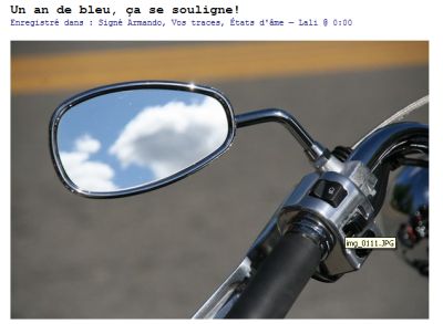 Il s’agit de l’anniversaire d’un blog, Agnès.