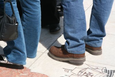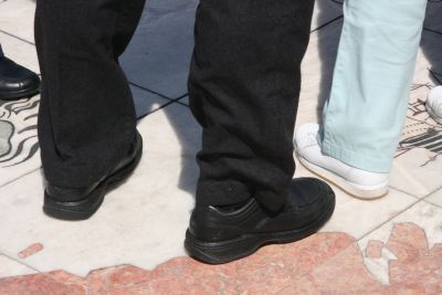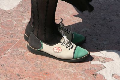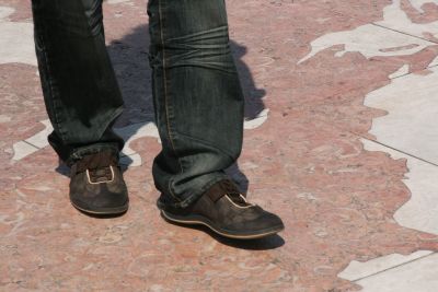 La dame a du faire plusieurs tours du monde..son lacet est tout défait !!