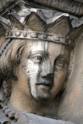 Est-ce un prince déchu pour avoir aimé celle que ne lui était pas destinée? Est-ce un prince de sang qu’une sorcière aux pouvoirs maléfiques a emprisonné dans la pierre pour se venger de ne pas avoir obtenu un baiser de sa bouche? Pourquoi cette tache blanchâtre qui lui tranche le visage comme une balafre? Pourquoi est-il là, perdu sur un portail du Boulevard Adolph Max, à Bruxelles?… Qui est-il ?… Je ne vois son nom nulle part.