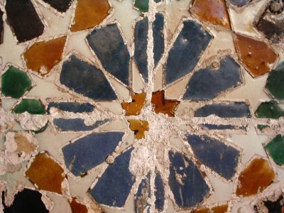Faut dire que jusqu’à la fin du XVème siècle, les artisans andalous fabriquaient des plaques de terre qu’ils vitrifiaient d’une manière uniforme pour ensuite, une fois celles-ci coloriées, les couper en formes géométriques qui, par la suite, seraient apposées au mur de manière à obtenir quelques beaux effets.