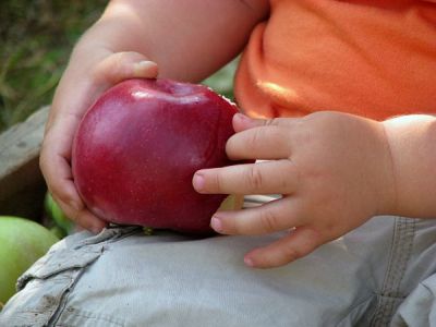 Plus que la belle pomme, c’est la petite main toute ronde qui me plaît.